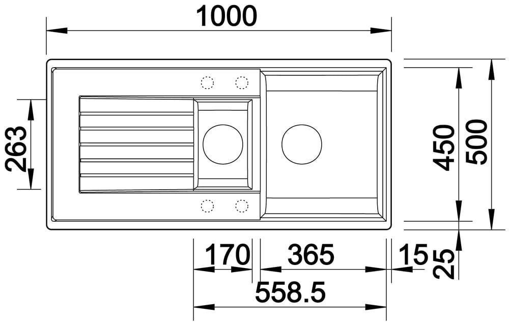 ">granitový drez v atraktívnej podobe, ktorý je vyrábaný poprednou spoločnosťou BLANCO. Disponuje priestrannou vaničkou s rozmermi 365 x 450 mm s hĺbkou 190 mm. Tá je dôvtipne doplnená o menšiu ale praktickú vaničku o rozmeroch 170 x 263 s hĺbkou 140 mm, ktorá je skvelým pomocníkom pri bežných činnostiach ako je umývanie ovocia či zeleniny alebo zlievaní cestovín. Ide o drez s odkvapom s rozmermi 1000 x 500 mm.